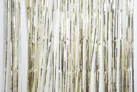 Metallic White Gold Fringe Curtain Backdrop