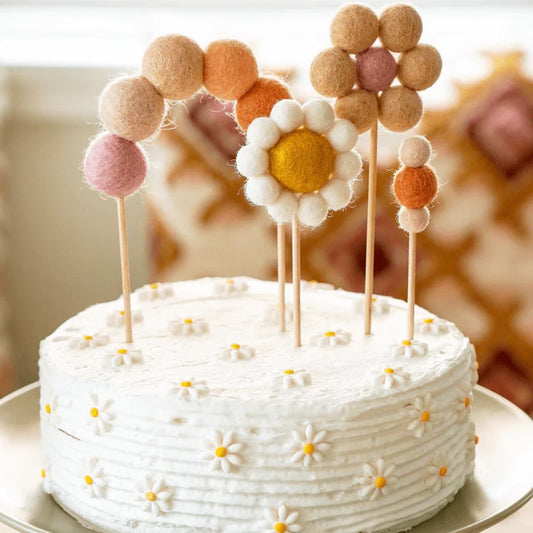 Felt Flower Pom Pom Cake Toppers - Set of 3