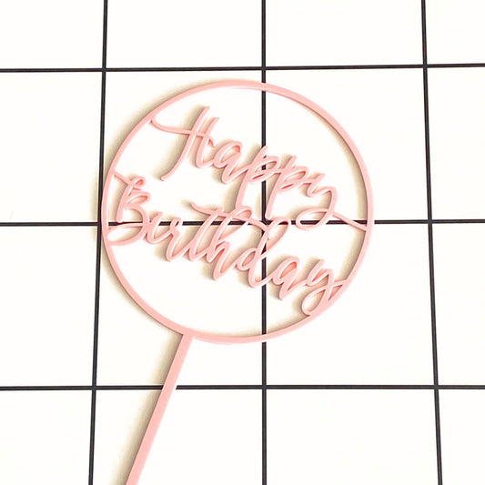 Pastel Pink Acrylic Happy Birthday Circle Cake Topper
