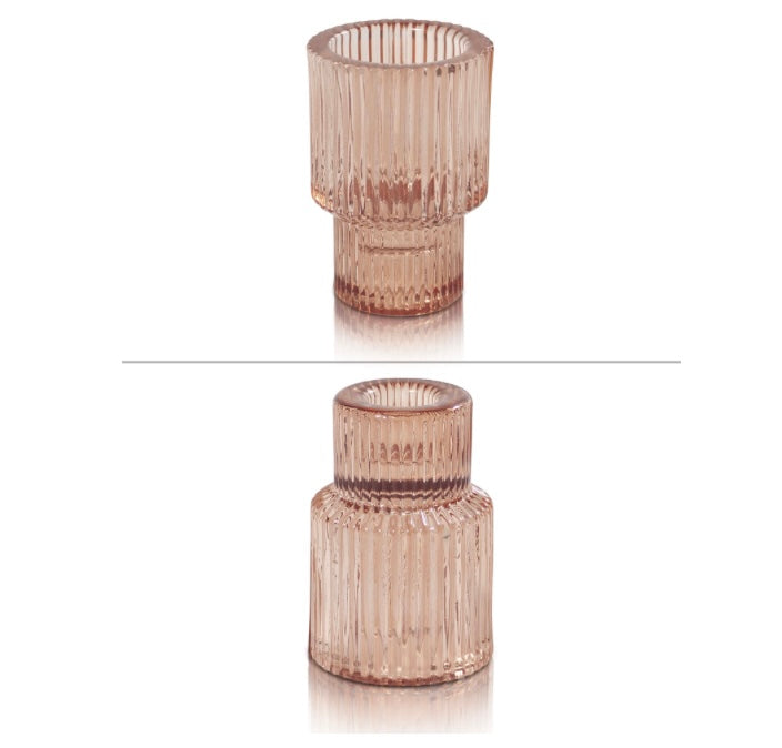 The Arlo Vintage Glass Candle Holder has a gorgeous, retro silhouette and stylish pleated glass finish. Cleverly designed to suit multiple candle types. Simply flip this duo candle holder over to hold tealight candles or use narrow side up for both Dinner and Taper candles.