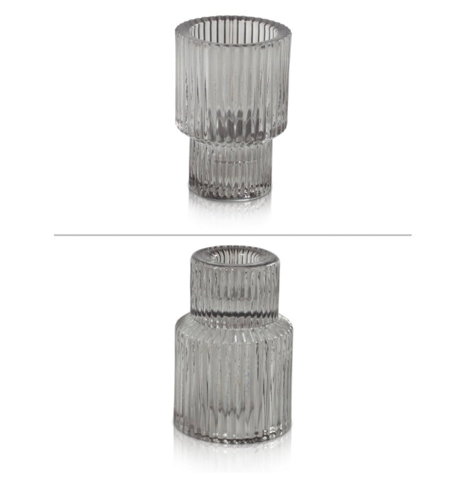 The Arlo Vintage Glass Candle Holder has a gorgeous, retro silhouette and stylish pleated glass finish. Cleverly designed to suit multiple candle types. Simply flip this duo candle holder over to hold tealight candles or use narrow side up for both Dinner and Taper candles.