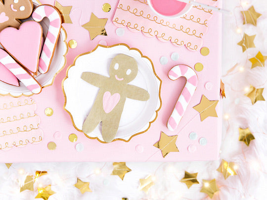 Package contains 20 Kraft Colour Gingerbread Man Shaped Napkins with pastel pink features.