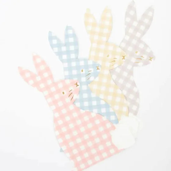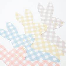 these delightful bunny paper napkins with add a fabulous look to your Easter, or springtime, party table. They are crafted from a gingham print design, in 4 colors.