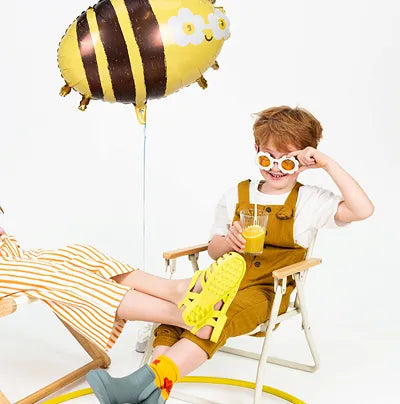 This bee-autiful Bumblebee balloon features a gorgeous pastel palette and gold features.