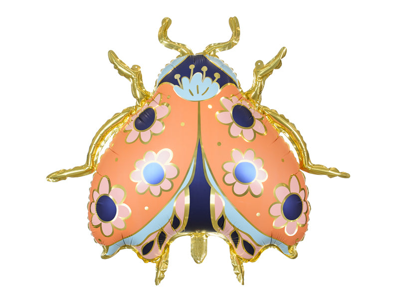 Package includes 1 x Foil Ladybug Balloon with a pretty daisy print and gold detailing.