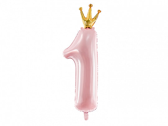 1 x Pastel light Pink 90cm foil number balloon with gold crown