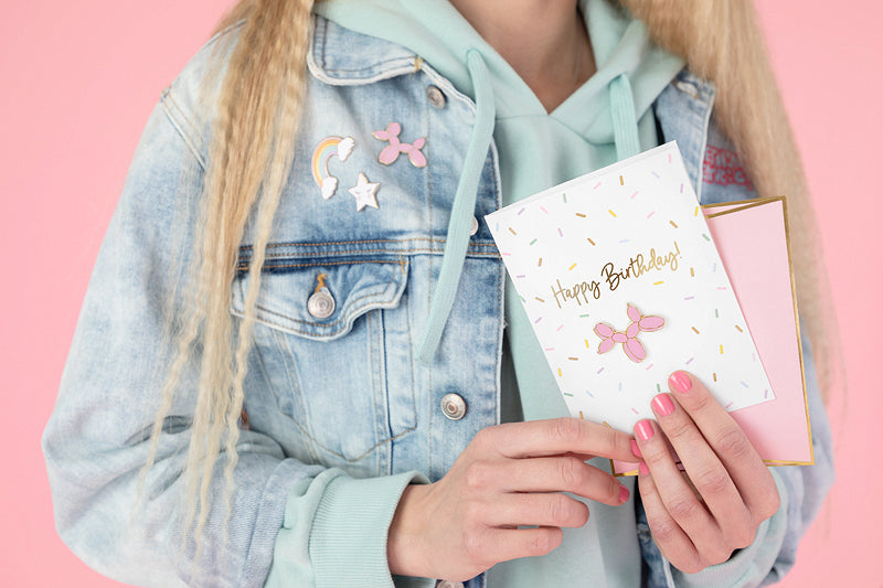 Sprinkle Birthday Card with Balloon Dog Enamel Badge