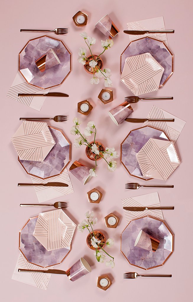 Pack includes 8 modern and elegant paper cups with gradient layers of beautiful lavender and rose gold.